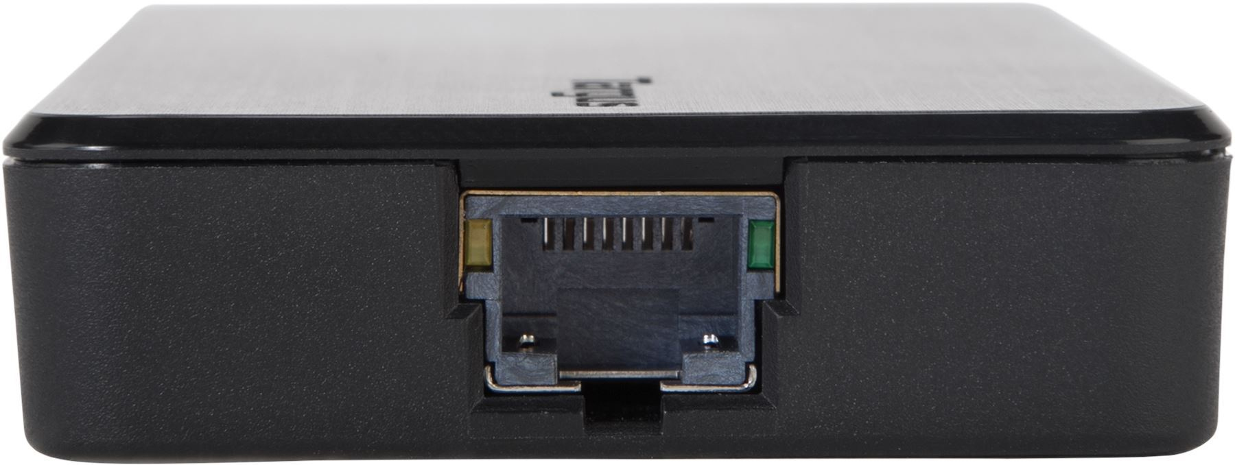 The Targus DSU100US laptop dock/port replicator features a sleek, professional design with a matte finish that complements modern office aesthetics. Its compact footprint fits neatly on any desk without occupying excessive space. The robust casing ensures durability, while strategically placed ports offer easy access and cable management, supporting a clean and organised workspace.