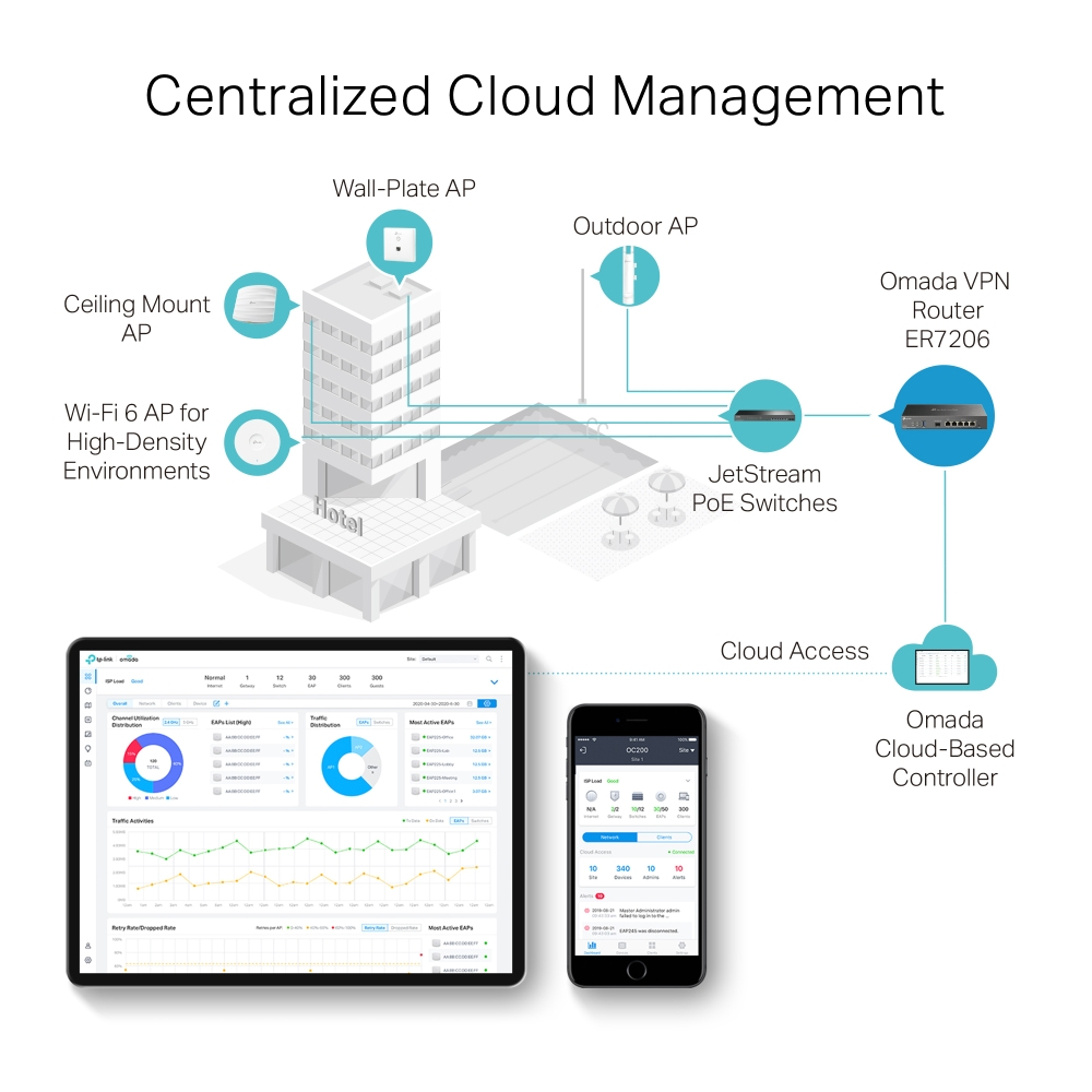 - Centralised management via Omada SDN for simplified network monitoring and configuration, reducing IT overhead.