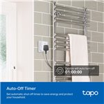 The TP-Link Tapo P110M smart plug features a sleek, minimalist design with a matte white finish that blends effortlessly into professional environments. Its compact form factor ensures it does not block neighbouring sockets, making it practical for dense office setups. The LED indicator provides clear status updates without being intrusive, supporting a clean and organised workspace aesthetic.